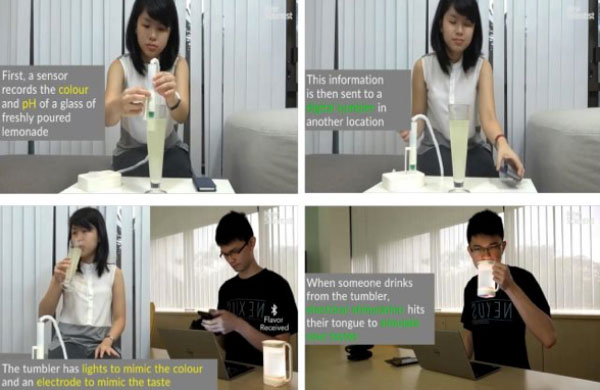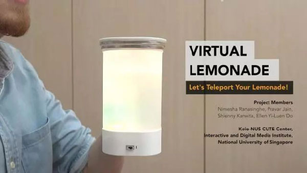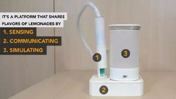 在2017年日本横滨举办的 Conference on Tangible, Embedded and Embodied Interaction大会上,新加坡国立大学Nimesha Ranasinghe团队发布了其成果,一款可以通过网络实现柠檬水风味共享的杯子。这无疑将网络共享的范围提升到了新的高度,通过网络发送味道信息的时代或许即将来临?!